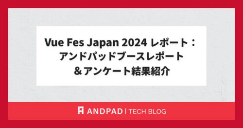 こんにちは。アンドパッドでフロントエンドエンジニアをしている小泉です。 10月19日に Vue Fes Japan 2024 が開催されました。アンドパッドとしては初めてスポンサーブースを出展し、フロントエンドエンジニアを中心に5名での参加となりました。 この記事で…