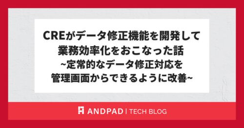 こんにちは!CREの山本です。今回はCREが機能を開発し、定常的に発生するデータ修正作業の工数削減に挑んだ話について書こうと思います! はじめに 以前ブログを寄稿してから1年以上間が空いてしまいました。 アンドパッドにJOIN後に色々なことがありました…