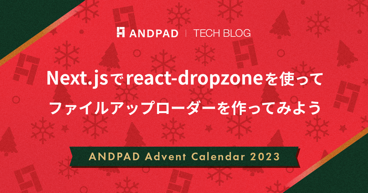 どうもこんにちは。フロントエンドエンジニアの蓮子です。今回は、Next.js におけるドラッグ & ドロップできるファイルアップローダーの作り方の紹介です。 使用するライブラリは react-dropzone です。「Next.js ファイルアップロード ドラッグアンドドロップ」とググると数多く紹介されていることから、利用者が多くメジャーなものな気がします。